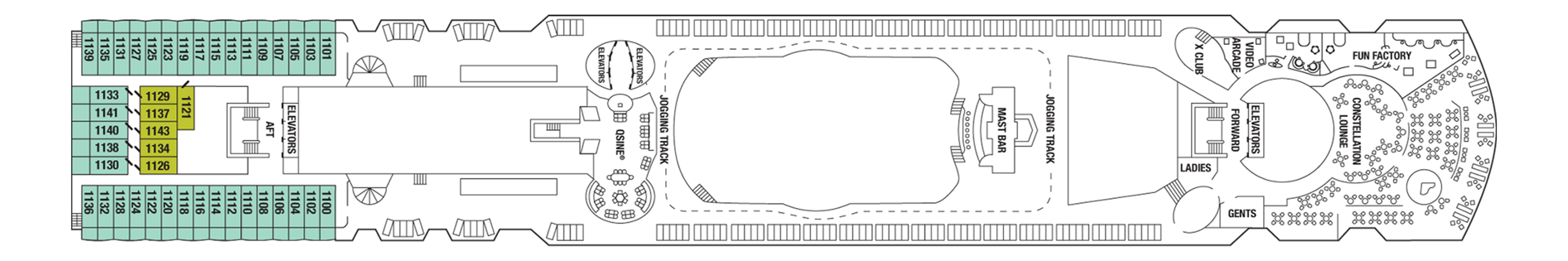 Smoking is not permitted inside any stateroom or on any stateroom balcony. This applies to all stateroom categories onboard. Smoking is also not permitted in any dining venue, theatre, bar, lounge, hallway, or elevator; on the jogging track; or in most other indoor areas. Furthermore, smoking is not allowed in certain outdoor spaces, including restricted areas, food venues, and kids play areas and pools. If a guest is in violation of this “No Smoking” policy, a cleaning fee will be applied to their onboard account.