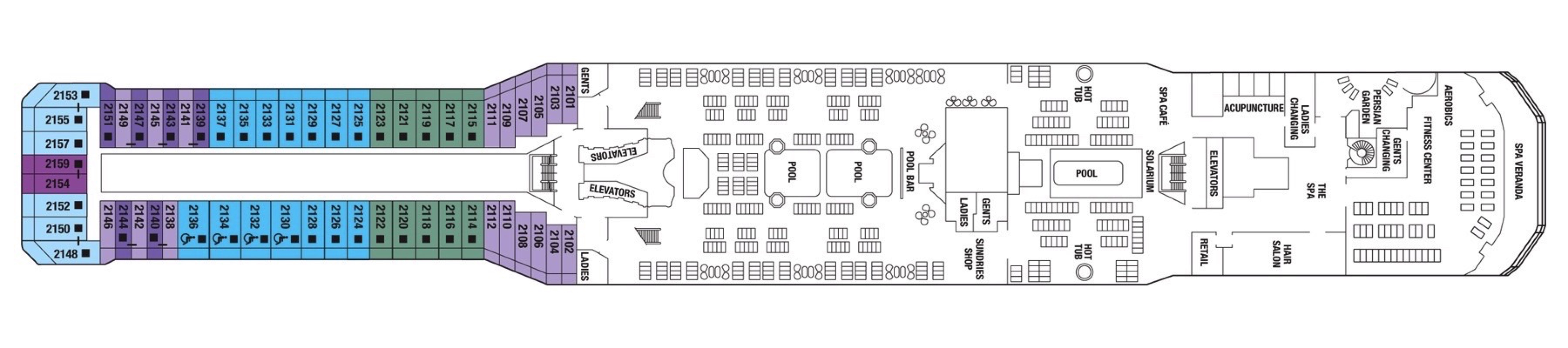 We don’t require proof of disability such as medical certificates or disability placards. However, during the booking process, we will ask guests to attest to their need for the accessible stateroom.