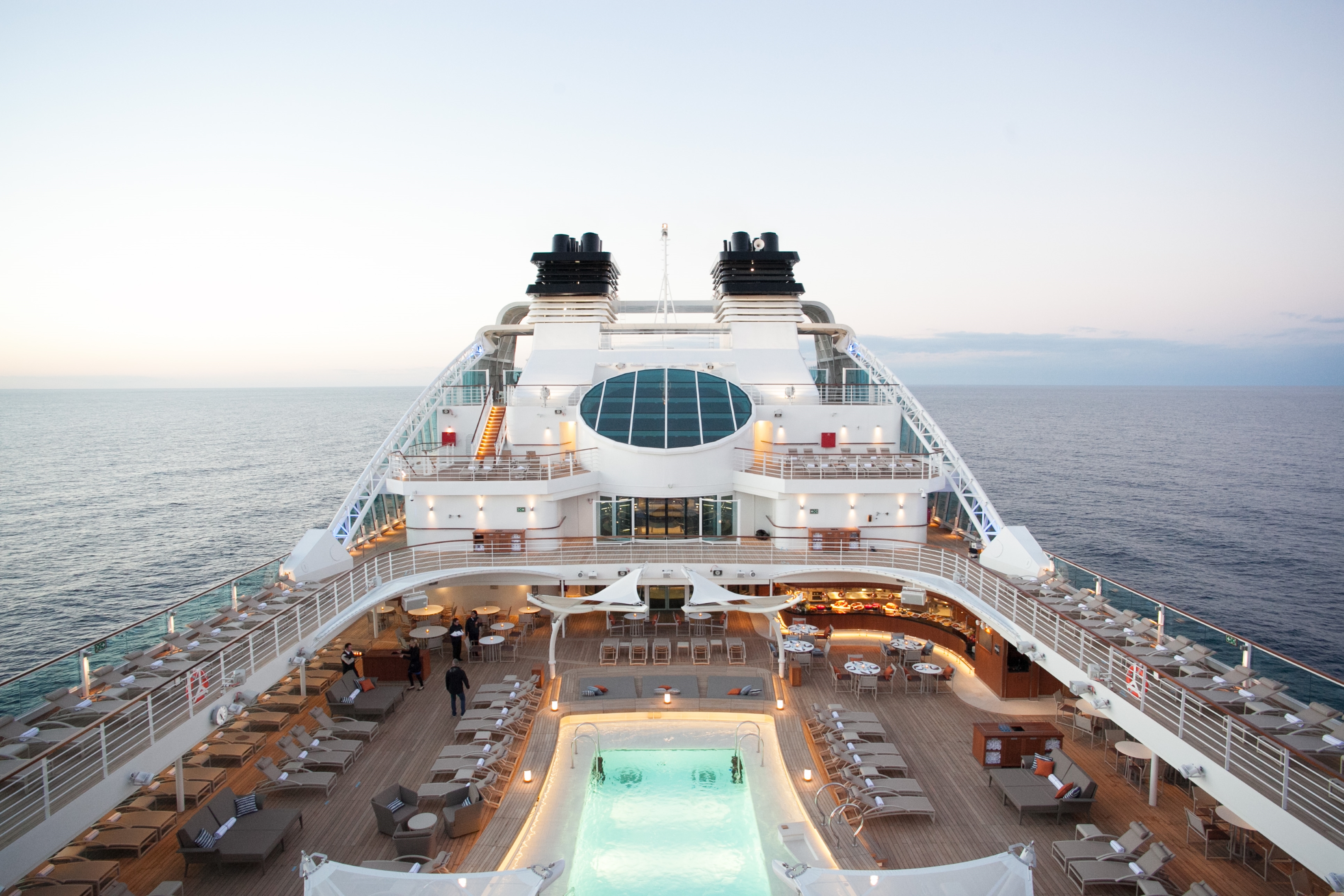 The liveliest lounge on board is the scene of daily afternoon tea service. It is a popular spot for pre-dinner drinks and dancing to live music. After dinner, the dancing music continues, and later a DJ spins dance music until late at night. Another terrace of open deck aft of The Club boasts a plunge pool and two small whirlpool spas.