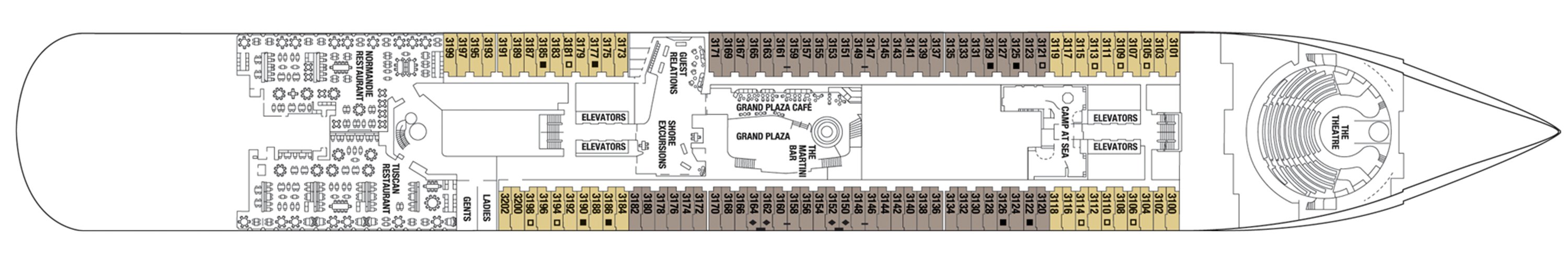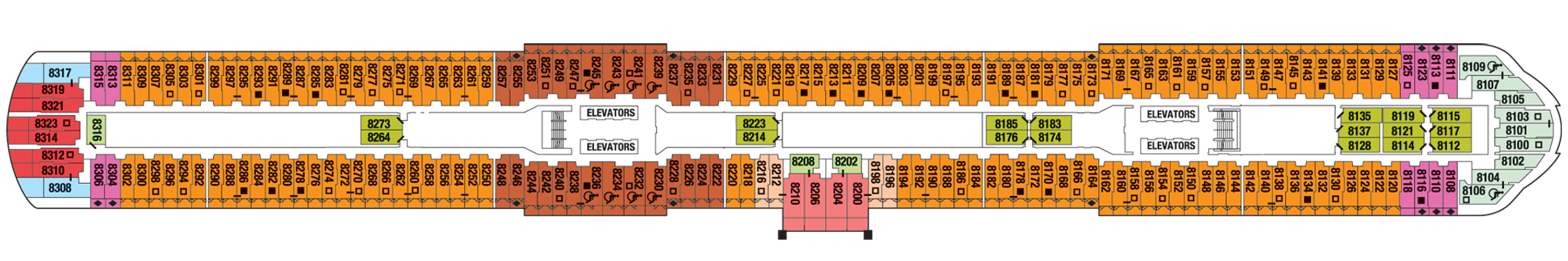• Complimentary minibar stocked with soda and beer on embarkation day and water restocked daily
