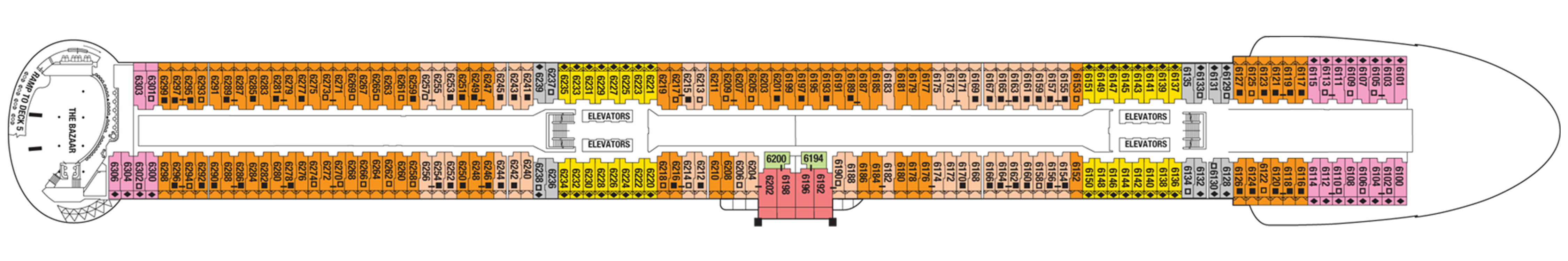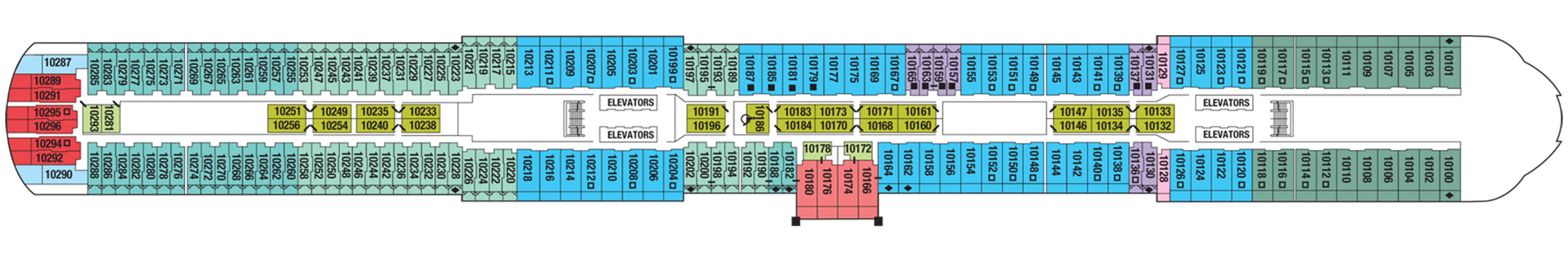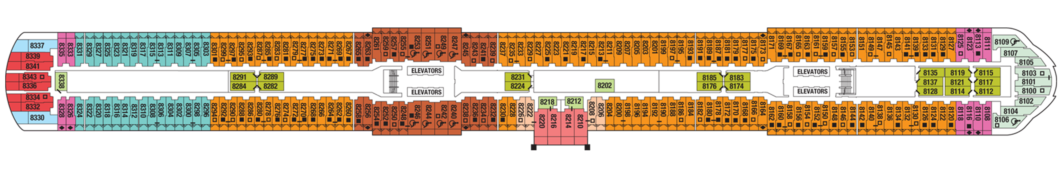 • Complimentary minibar stocked with soda and beer on embarkation day and water restocked daily