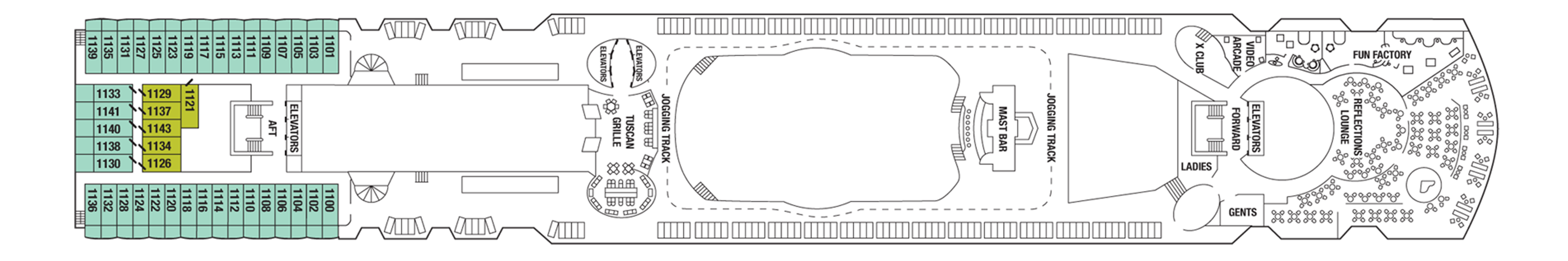 Smoking is not permitted inside any stateroom or on any stateroom balcony. This applies to all stateroom categories onboard. Smoking is also not permitted in any dining venue, theatre, bar, lounge, hallway, or elevator; on the jogging track; or in most other indoor areas. Furthermore, smoking is not allowed in certain outdoor spaces, including restricted areas, food venues, and kids play areas and pools. If a guest is in violation of this “No Smoking” policy, a cleaning fee will be applied to their onboard account.