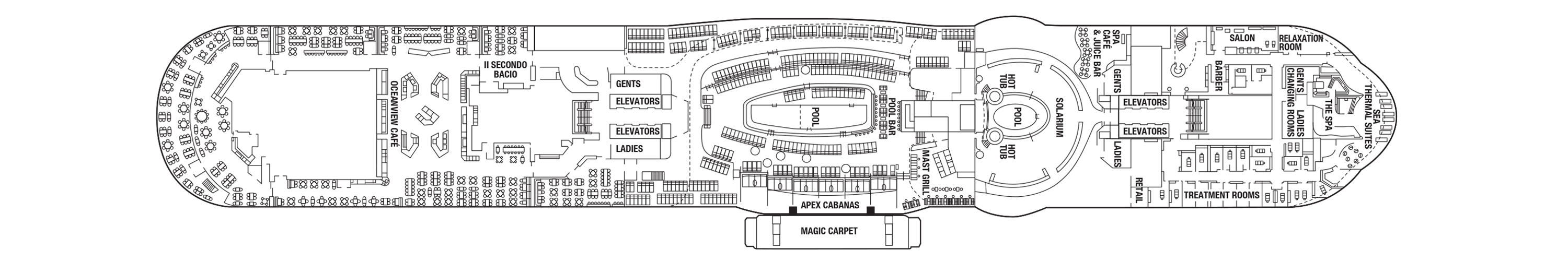 Positioned high above the bridge, these all-new suites offer panoramic views from front to back. And with over 2,500 square feet of indoor and outdoor opulence, Iconic Suites are also the most luxurious and largest in our fleet.