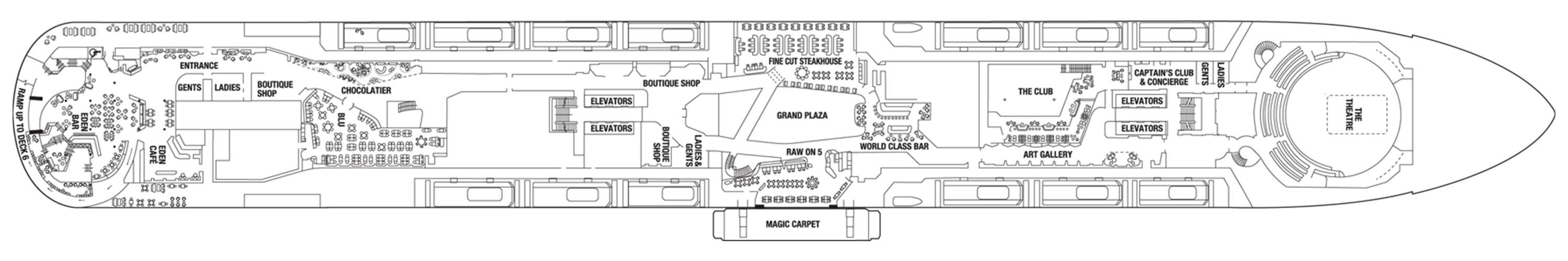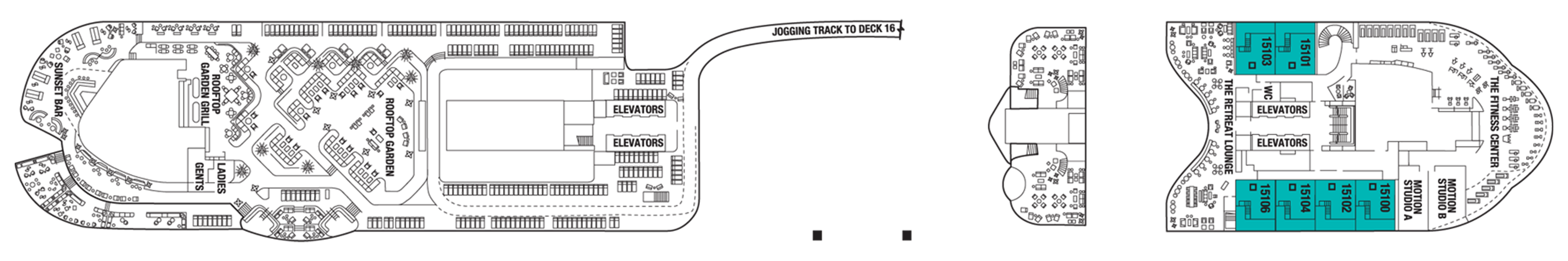 Positioned high above the bridge, these all-new suites offer panoramic views from front to back. And with over 2,500 square feet of indoor and outdoor opulence, Iconic Suites are also the most luxurious and largest in our fleet.