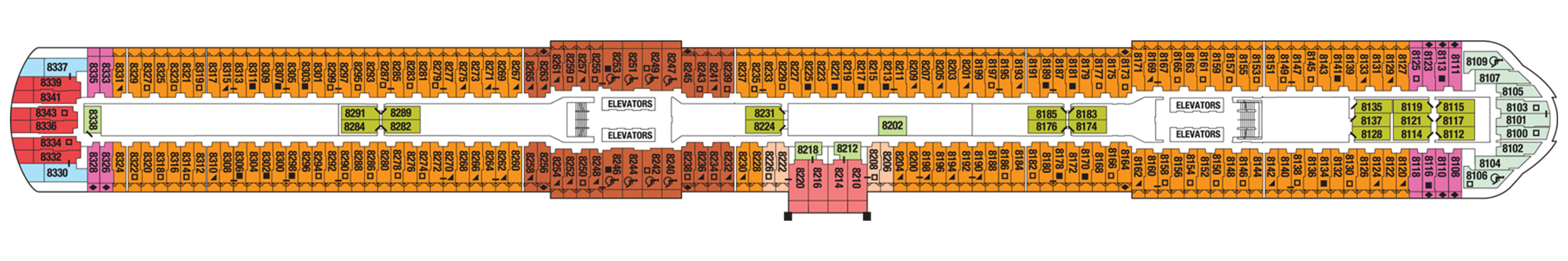 • Complimentary minibar stocked with soda and beer on embarkation day and water restocked daily