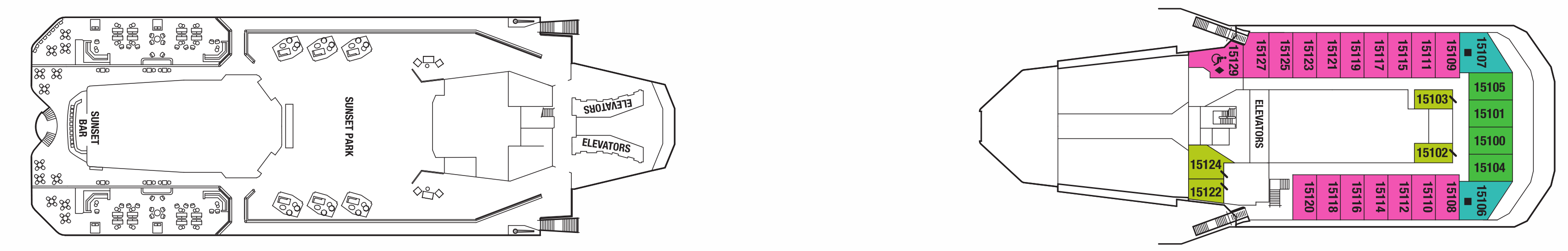 Spacious staterooms located in the aft of the ship, each with its own private veranda to enjoy the beautiful sunsets. Sunset Veranda staterooms offer superb ocean views at the stern of the ship. Your personal veranda lets you greet the day, enjoy fresh sea breezes, and soak in breathtaking sunsets.