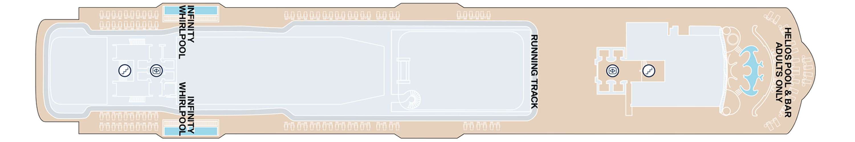 – RUNNING TRACK: Encircling the ship is a 360º track where runners can enjoy commanding ocean views while they do laps.