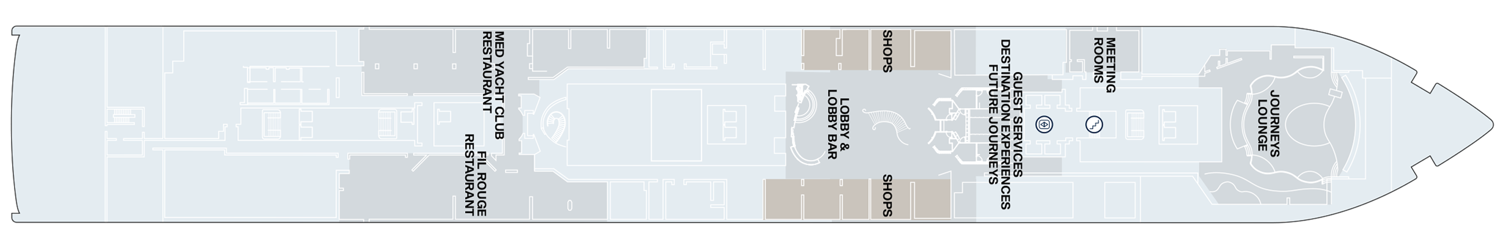 Inspired by sailings across crystal clear waters, the Med Yacht Club is influenced by sophisticated, beachside Mediterranean restaurants, embracing the varied cuisines of the region.
