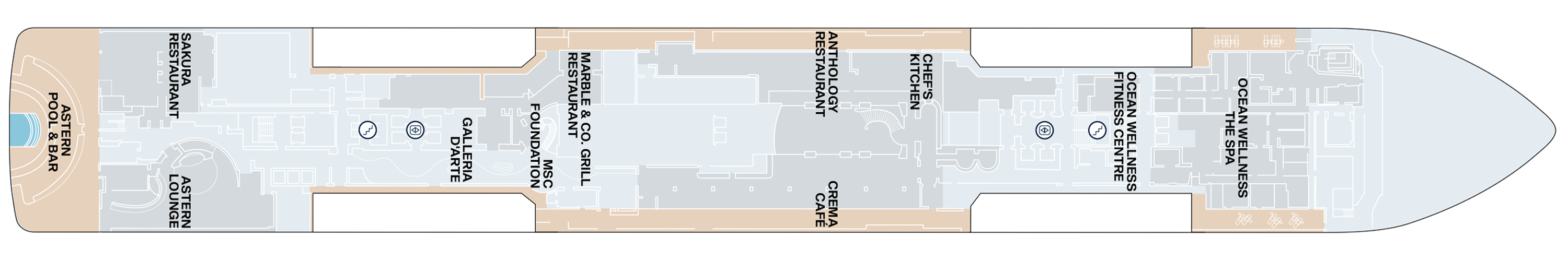 Combined with various indoor and outdoor whirlpool baths on the ship’s promenade deck, the ship has been designed with water as a real focal point of the onboard experience – helping our guests discover their ocean state of mind.