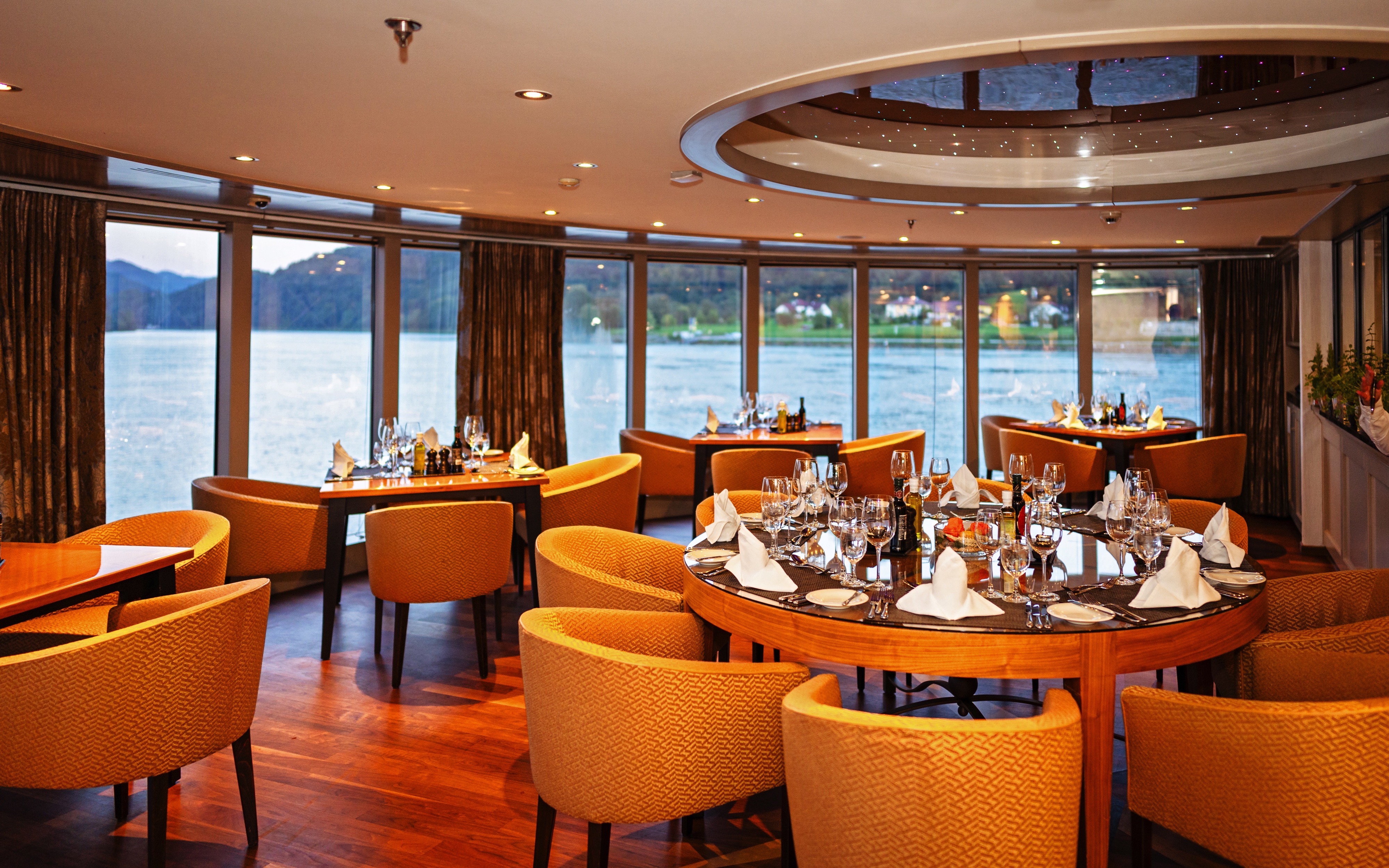 Join a few of your fellow travellers at The Chef’s Table, where the kitchen — usually hidden — becomes part of the entertainment. You’ll have the opportunity to watch the chef prepare a special multi-course meal right in front of you. The menu here is unique, making this a truly distinct gastronomic experience. Indulge in delectable dishes served with unlimited fine wines, hand-selected just for this dinner. It is the only venue of its kind on the river.