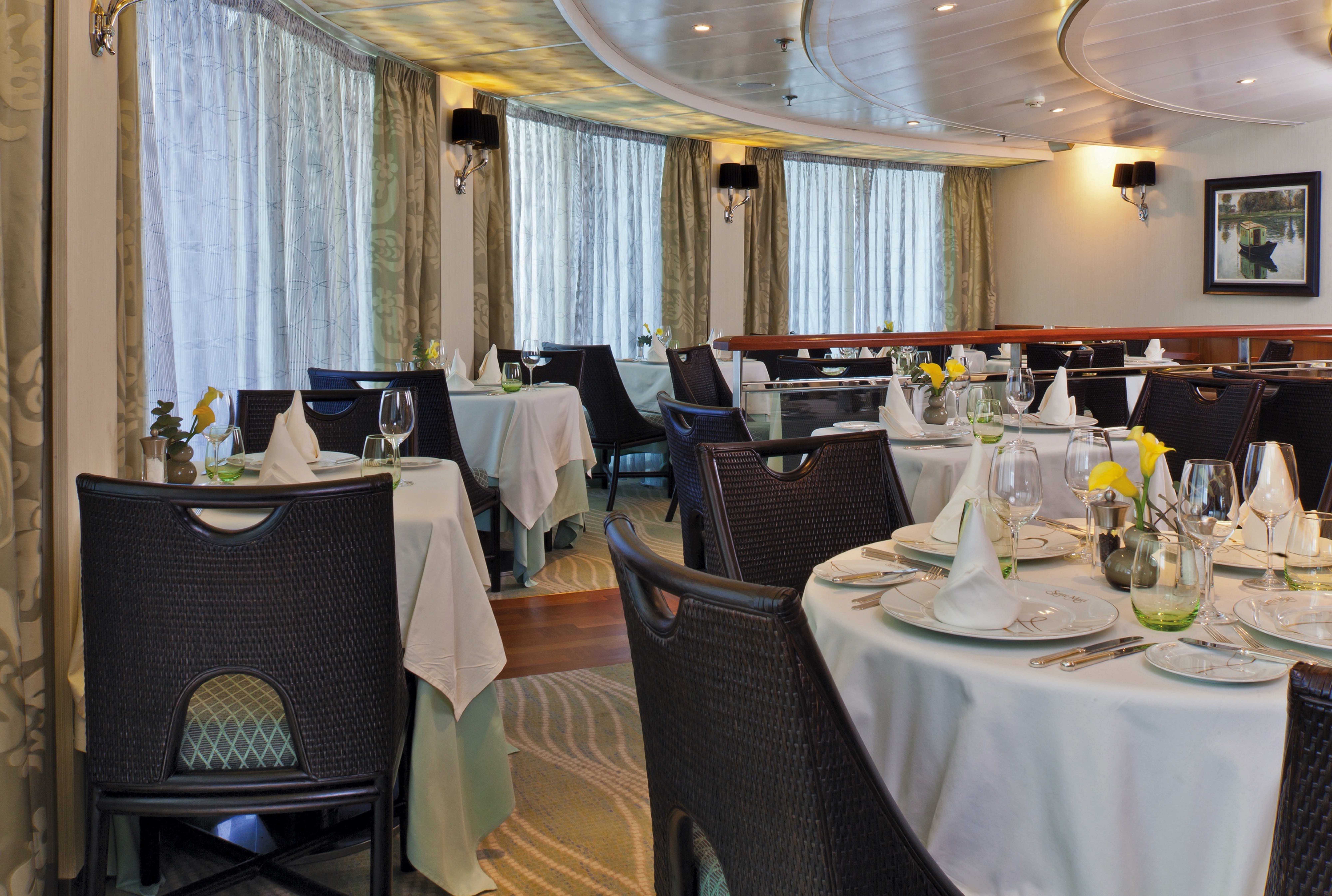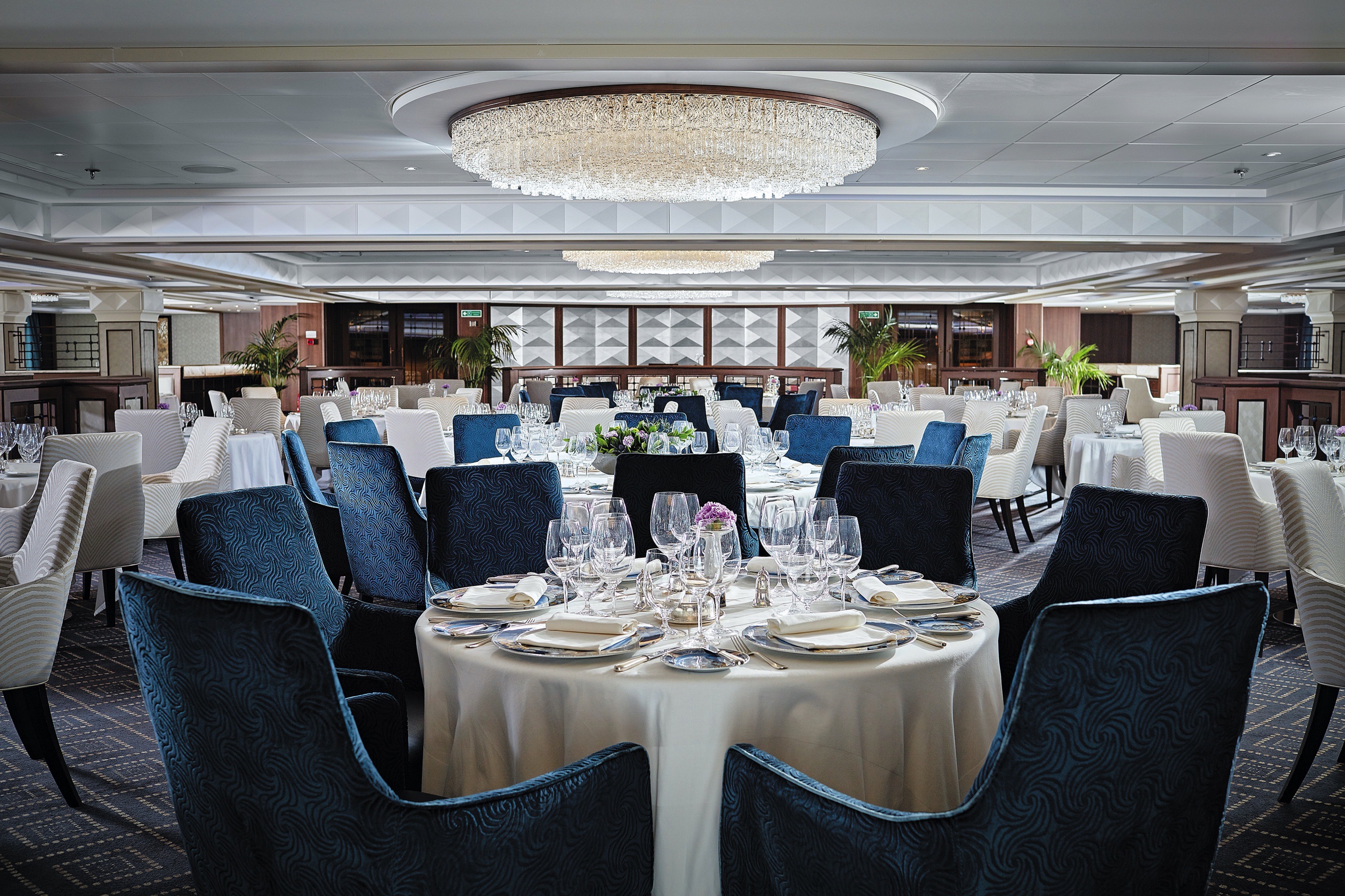 As the flagship restaurant aboard each of our ships, the wonderfully spacious Compass Rose serves breakfast, lunch and dinner and features an exceptional variety of European-inspired Continental cuisine, as well as flavourful vegetarian and kosher dishes. Elegantly decorated in blues and silvers with stunning Versace tableware, Compass Rose delights with a beautifully refined atmosphere bathed in natural light during the day.
