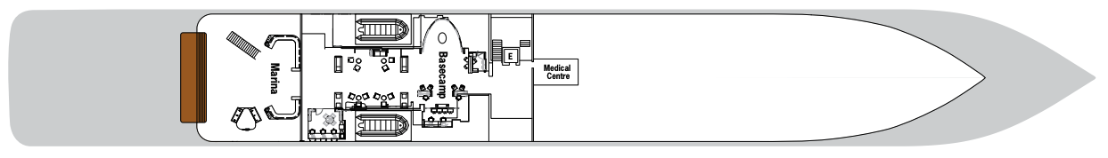 • Silver Cloud, Silver Wind: Panorama Lounge (port side) and Pool Grill (port side);