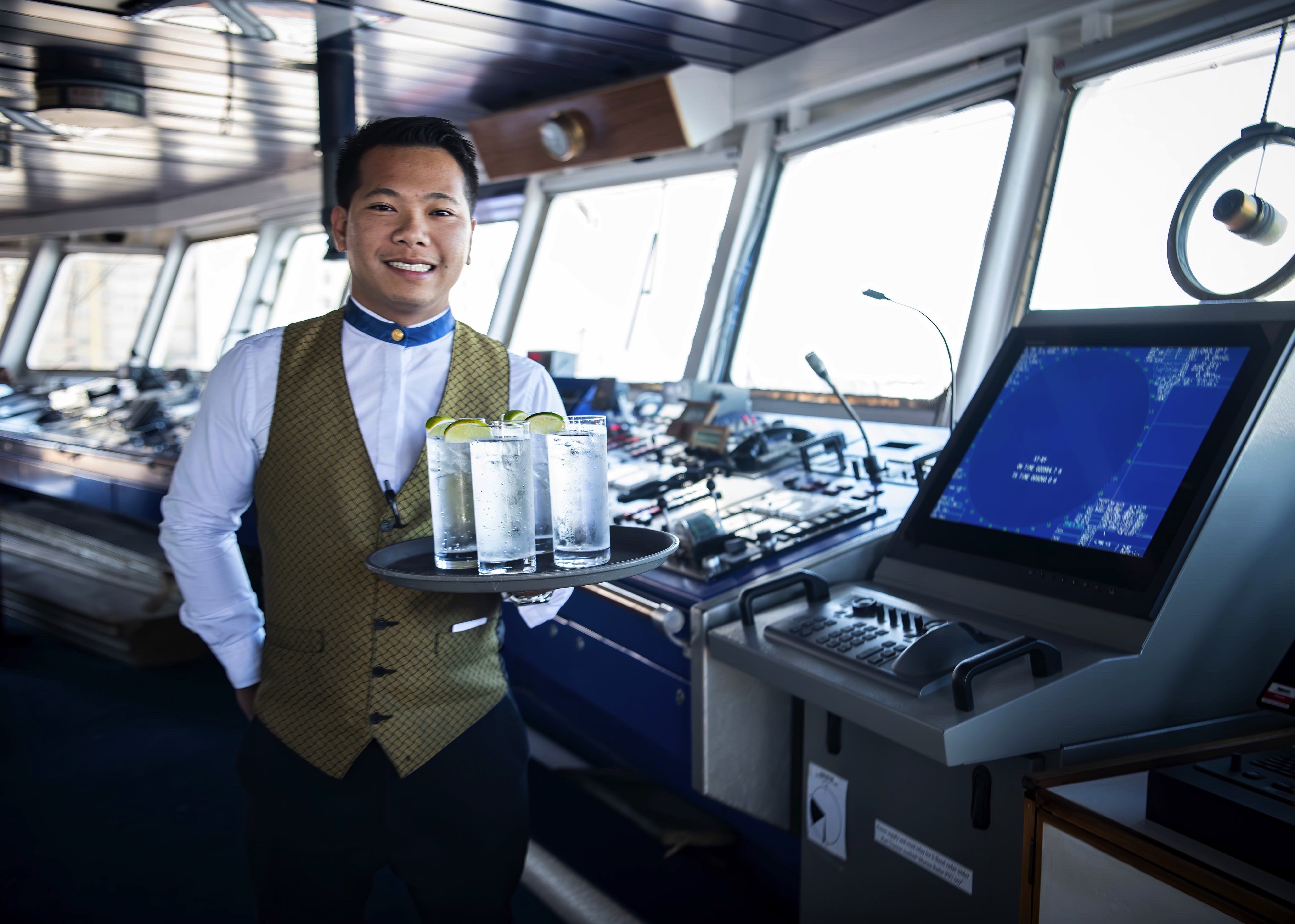 Guests can talk with the Captain and officers on watch, view the navigational charts with the crew and enjoy one of the best views on the ship.