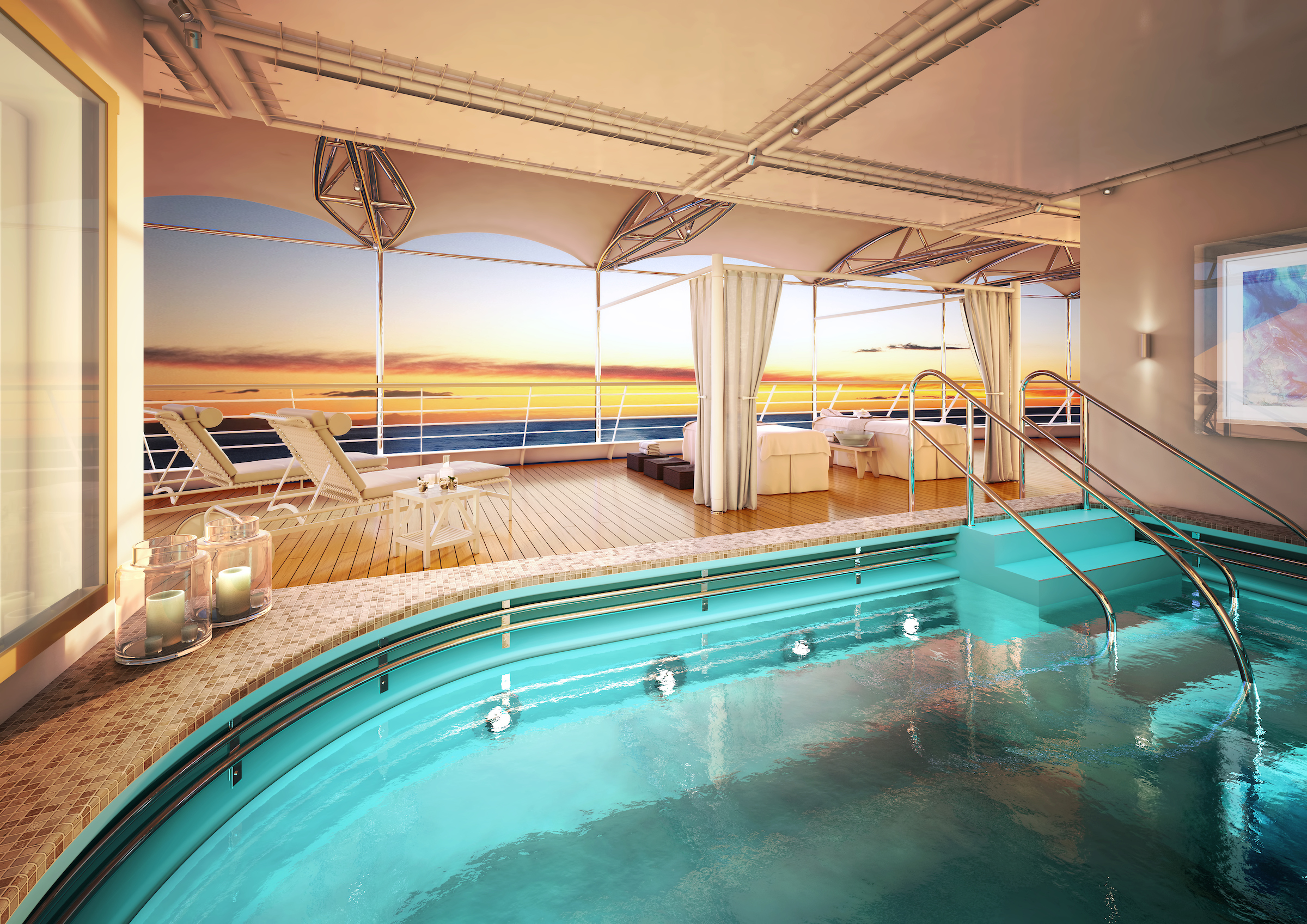 The epitome of open-air living—defining how you enjoy the outdoors, this is the place to cool off, unwind, and enjoy the sunshine. Take a dip in the pool, relax in one of the whirlpools, or simply soak up the view from one of the sun beds while your pool attendant anticipates your every whim. A little more ice? Certainly. A plush towel to dry off with? Of course. With breathtaking landmarks gliding by, dive into the clear waters in a setting that is so idyllic that you will not want to disembark.