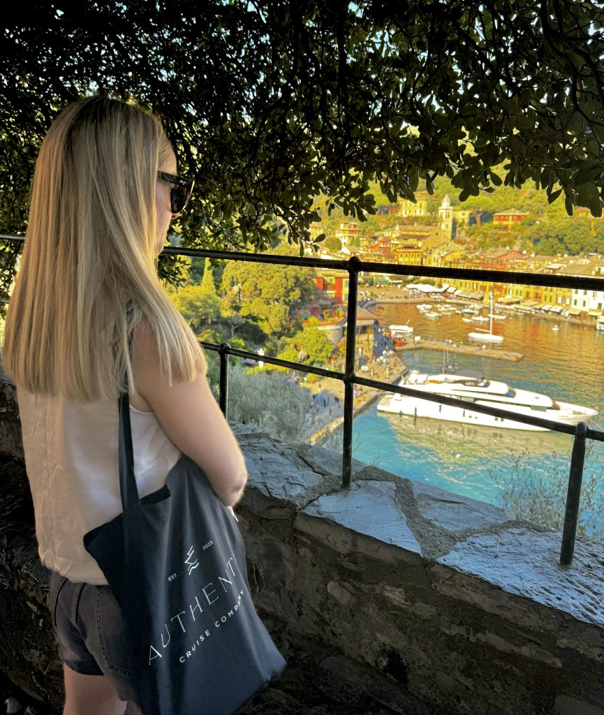 The iconic port of Portofino was next on our list and one we were both very excited for – and it did not disappoint! Being a relatively small cruise ship, Seabourn Ovation is able to get much closer to destinations than the larger ships, so we tendered just outside the bay and caught a tender right into the famous port. After an inspiring walk through cobble streets and up to the church and castle, we settled in the main square for an aperol spritz (or two) in the glorious sunshine!