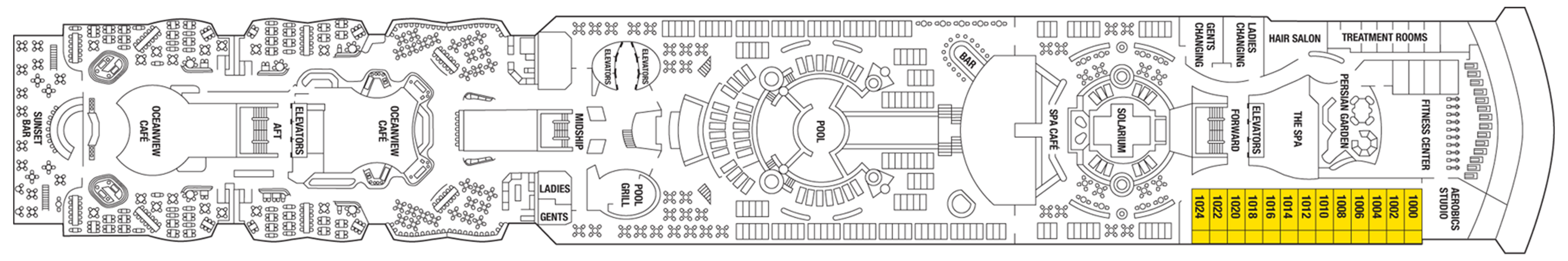 Spacious staterooms located in the aft of the ship, each with its own large private veranda to enjoy the beautiful sunsets. Sunset Verandas offer superb ocean views at the stern of the ship. Your personal veranda lets you greet the day, enjoy fresh sea breezes, and soak in breathtaking sunsets.