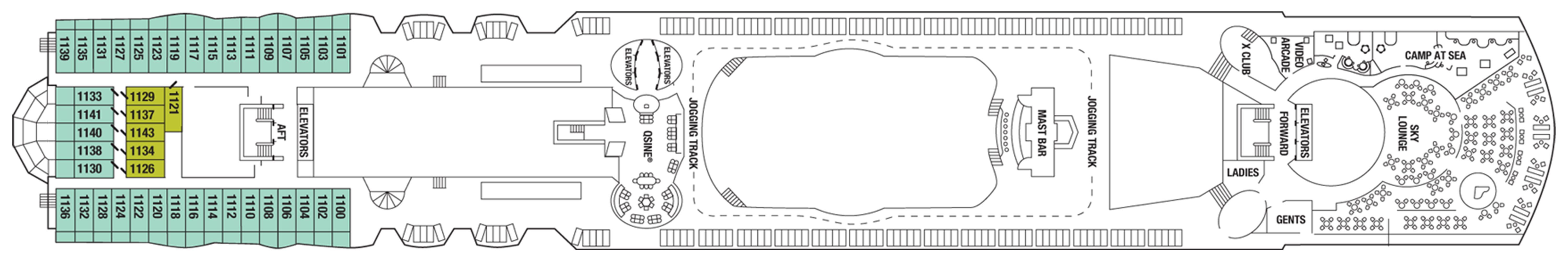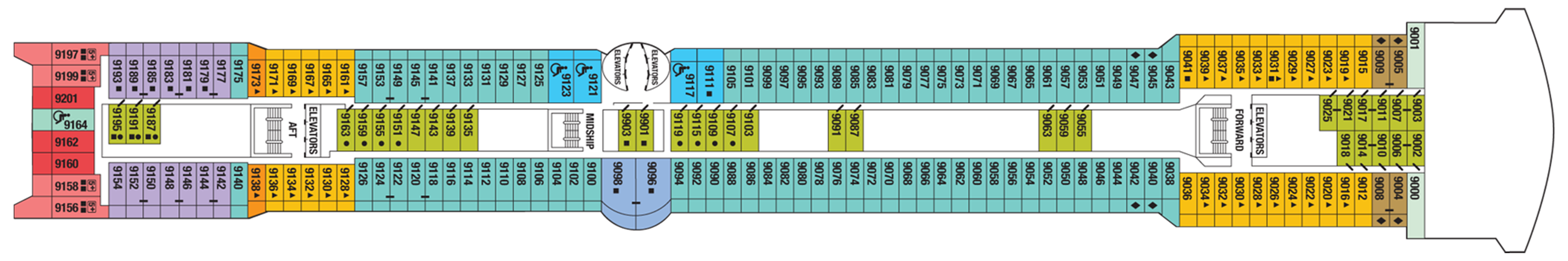 Smoking is not permitted inside any stateroom or on any stateroom balcony. This applies to all stateroom categories onboard. Smoking is also not permitted in any dining venue, theatre, bar, lounge, hallway, or elevator; on the jogging track; or in most other indoor areas. Furthermore, smoking is not allowed in certain outdoor spaces, including restricted areas, food venues, and kids play areas and pools. If a guest is in violation of this “No Smoking” policy, a cleaning fee will be applied to their onboard account.