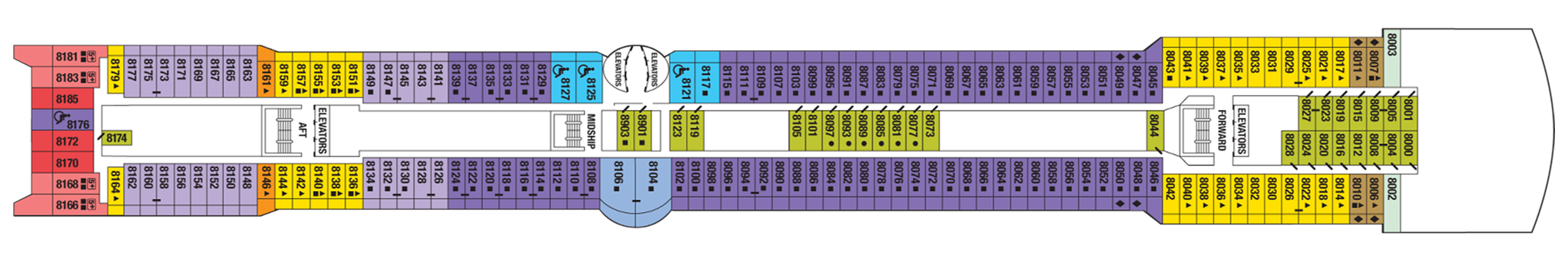 If requested in advance, we can arrange for accessible transportation to transfer guests between the airport and the pier. This service is offered at no extra charge to guests who have purchased transfers. Please note that accessible transportation may be limited or not available outside the United States.