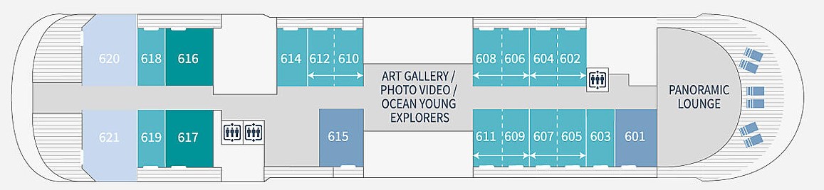 The Theatre* is the most unique meeting space on board. It’s the largest space on the ship and regularly accommodates all the passengers. It plays host to shows and entertainment as well as conferences from our experts, naturalist guides and guests of honours. The Theatre makes every cruise unique and enriching thanks to its constant and very accessible events.