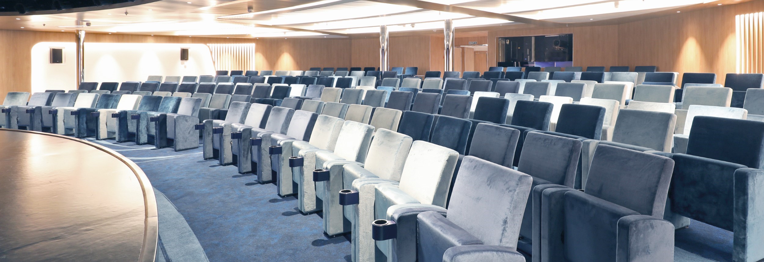 The Theatre* is the most unique meeting space on board. It’s the largest space on the ship and regularly accommodates all the passengers. It plays host to shows and entertainment as well as conferences from our experts, naturalist guides and guests of honours. The Theatre makes every cruise unique and enriching thanks to its constant and very accessible events.