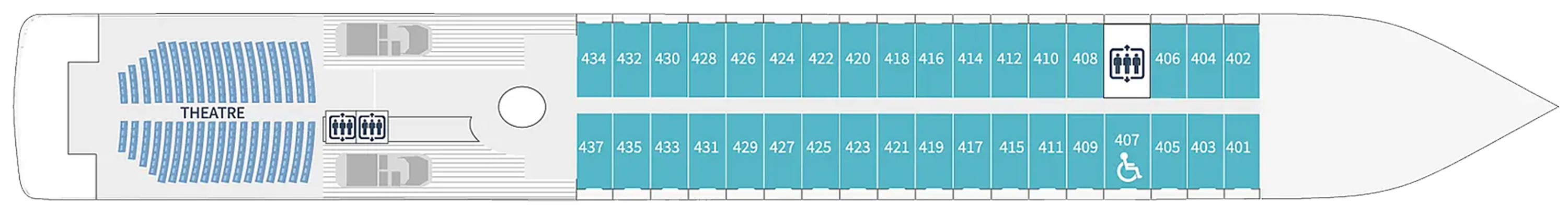The Theatre* is the most unique meeting space on board. It’s the largest space on the ship and regularly accommodates all the passengers. It plays host to shows and entertainment as well as conferences from our experts, naturalist guides and guests of honours. The Theatre makes every cruise unique and enriching thanks to its constant and very accessible events.