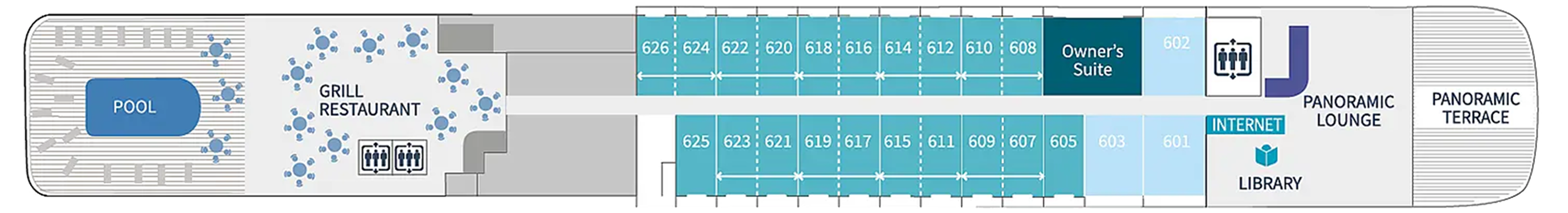 Enjoy breakfasts, buffet lunches and themed dinners in a relaxed atmosphere at the grill restaurant on Deck 6.