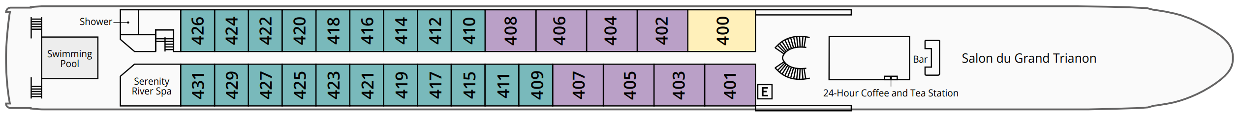 Located on the Sun Deck, the Bar du Leopard features panoramic views and a full service bar.