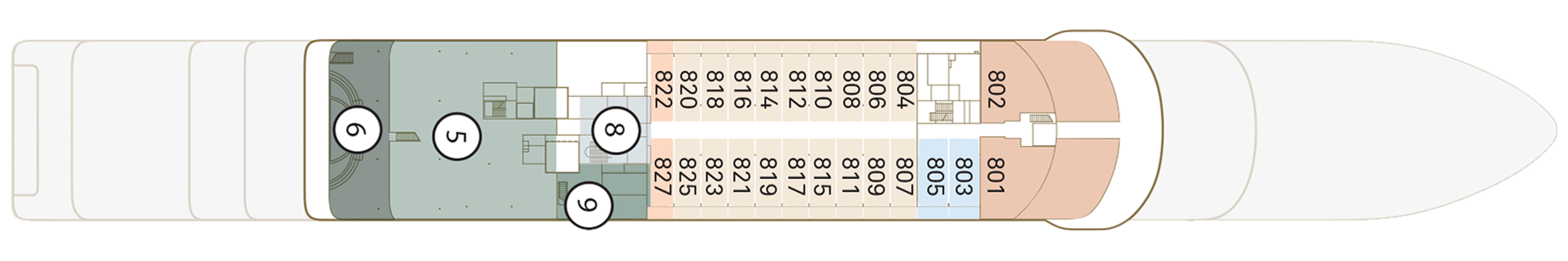 There is a designated outside smoking area on Deck 6 for guests. All suites, including suite verandah’s and terraces are non-smoking.