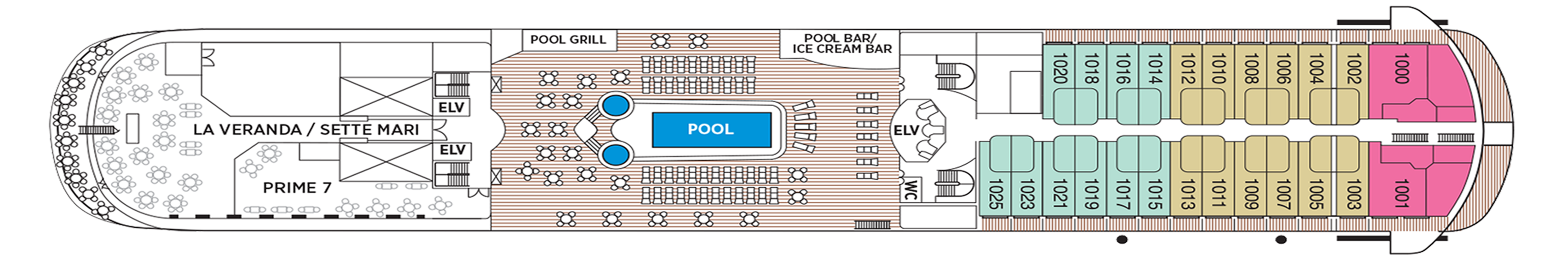 For those days when nothing but sitting poolside will do, head to our Pool Deck. You’ll be greeted by an inviting space with unforgettable views, teak accents and an amiable crew offering cold drinks and lounge chairs.