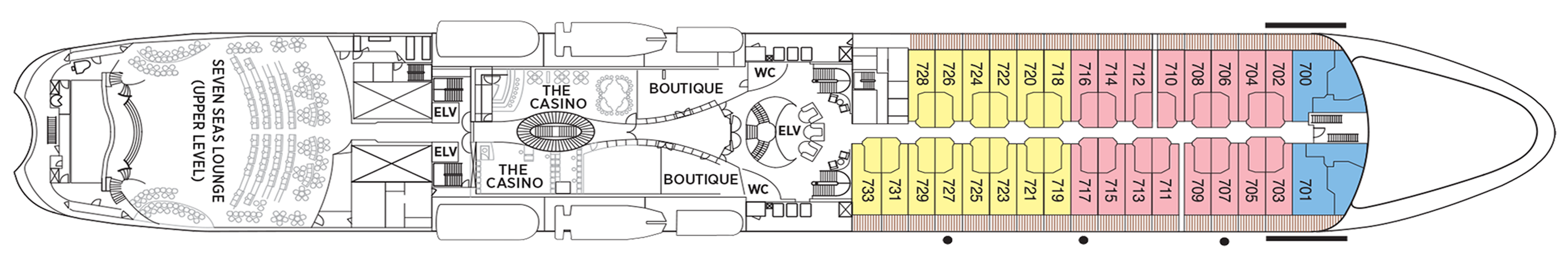 For the comfort and safety of all of our Guests, smoking is not permitted in any enclosed dining area, certain public venues, elevators, the Theatre, and all suites and balconies, and is only permitted in specific designated smoking areas. The use of electronic cigarettes is allowed within designated smoking areas only.