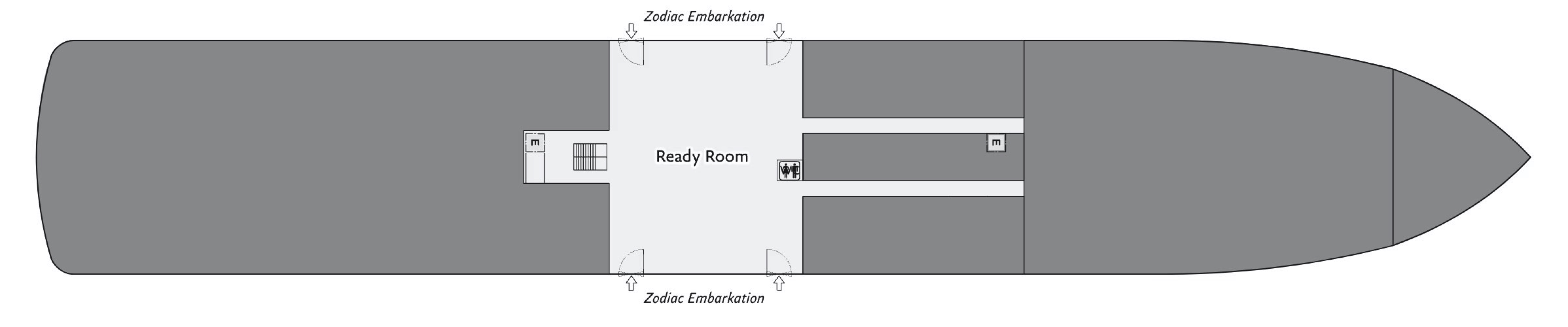 The Ready Room on Deck 3 enables you to comfortably prepare for, and disembark from, Zodiac excursions and shore landings and is conveniently located adjacent to Zodiac embarkation points.