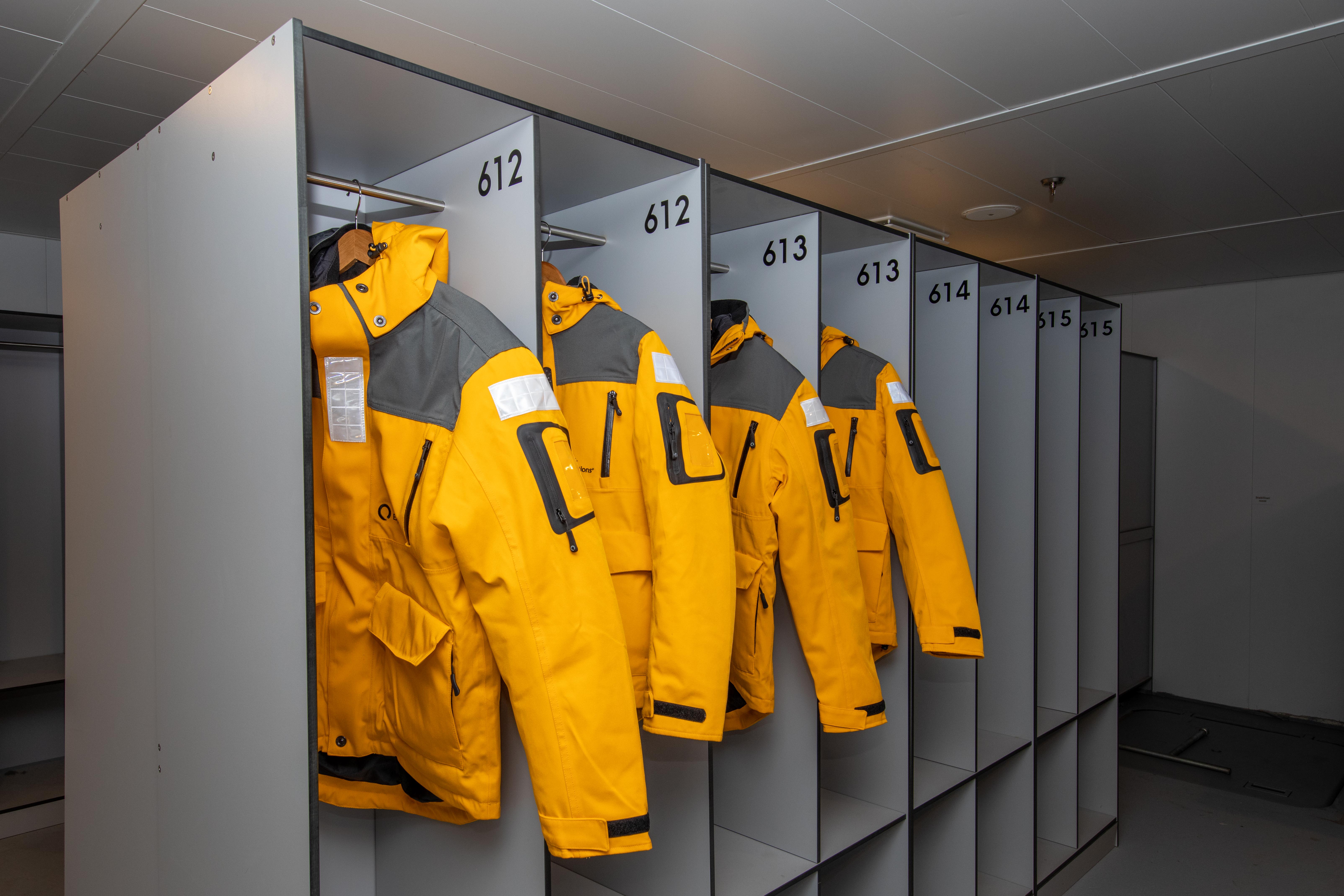 Each cabin is equipped with orange SOLAS life jackets. These life jackets are to be used in case of a ship emergency and during emergency lifeboat drills.